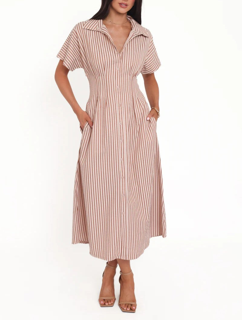 Short Sleeve Button Down Maxi Dress
